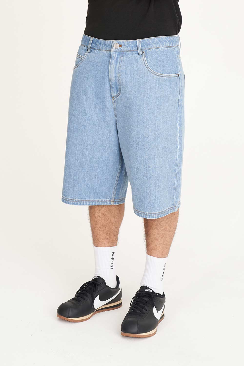 • What you need to know: 100% Cotton Denim, relaxed streetwear fit, fixed waistband with fly and button closure and Huffer branded embroidery
